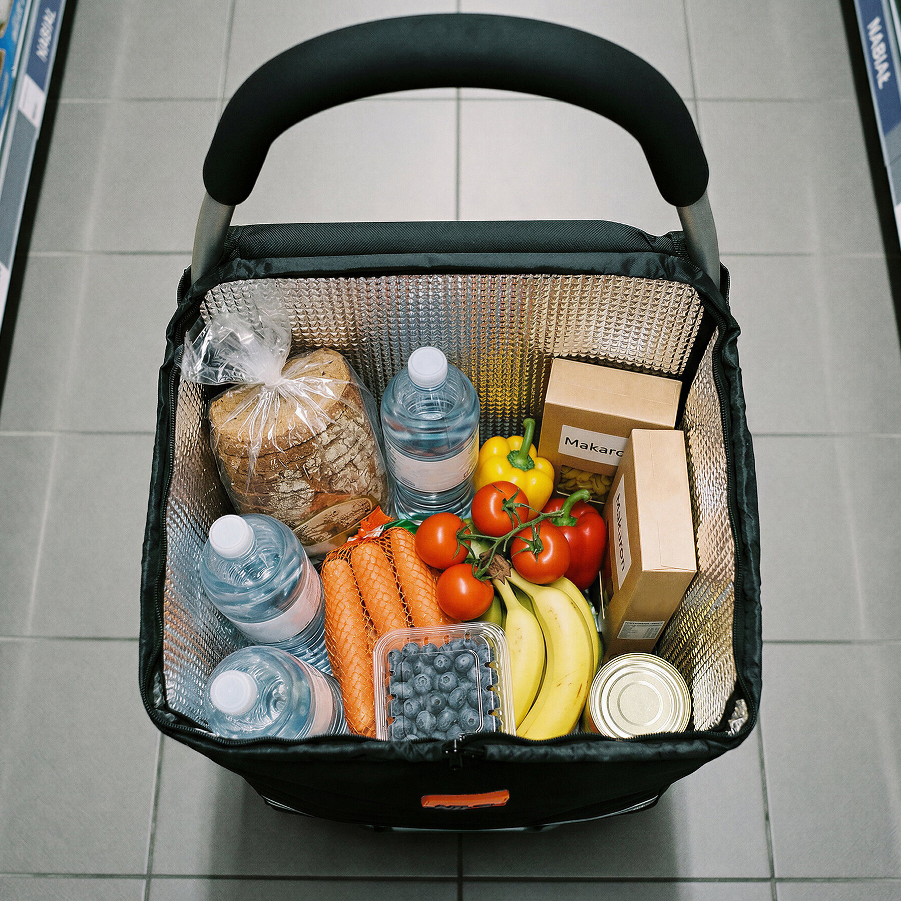 Vozík je postaven na hliníkové konstrukci, která zajišťuje stabilitu a dlouhou životnost při zachování nízké hmotnosti. Taška z odolného materiálu polyester 900D má je uvnitř vybavena termoizolační vrstvou, která pomáhá udržet teplotu převážených potravin. Objem přibližně 45 litrů umožňuje pohodlně převážet větší nákupy a maximální zatížení až 30 kg výrazně uleví rukám i zádům.