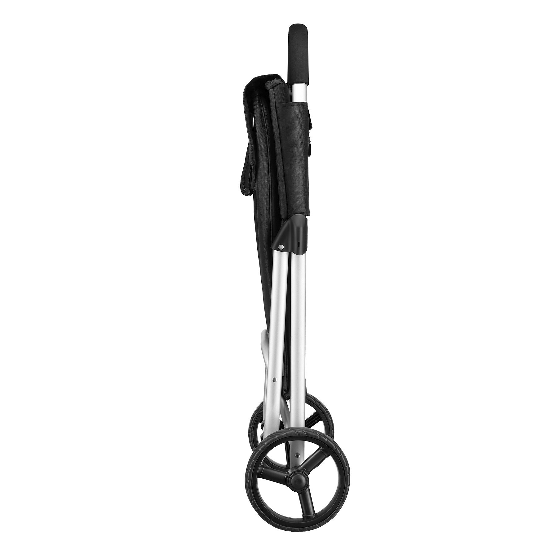 Velká kola o průměru 20 cm a šířce 3,5 cm zajišťují stabilní a plynulý pohyb na různých površích – na chodníku, dlažbě i v obchodě. Hliníková rukojeť s pěnovým potahem dobře padne do ruky a zvyšuje komfort při manipulaci i při plném zatížení.