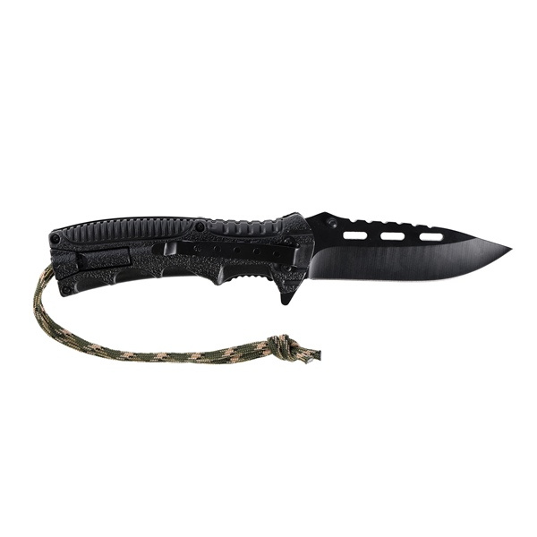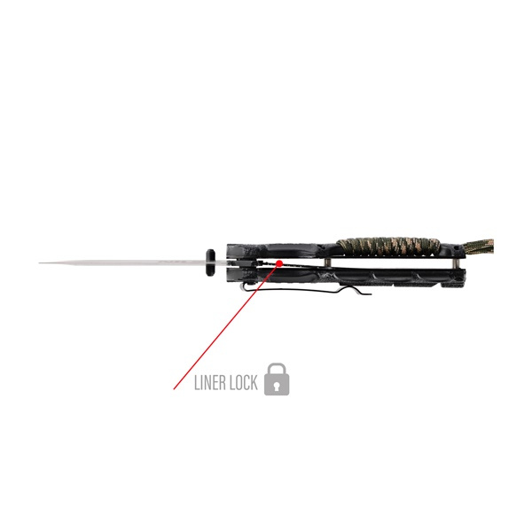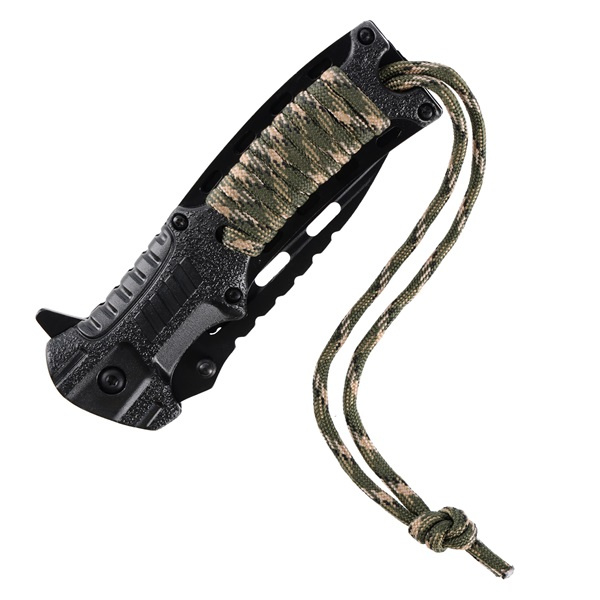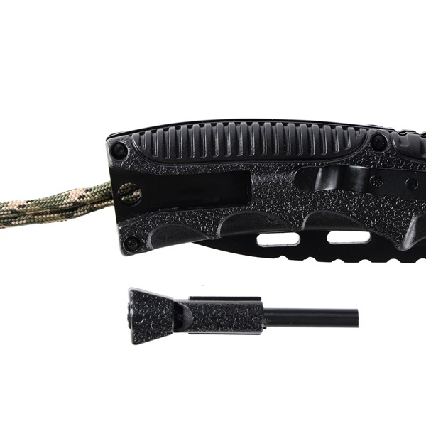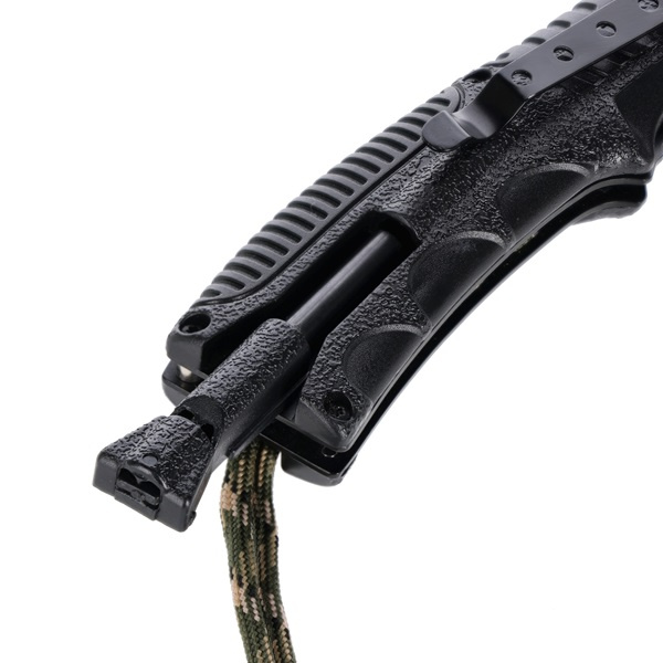 Rukojeť nože je omotána přibližně 50 cm paracordu, který lze použít jako nouzovou šňůru. Píšťalka a křesadlo umístěné v rukojeti zvyšují funkčnost nože, takže je nejen řezným nástrojem, ale i pomůckou pro přežití. Praktický klip umožňuje připevnit nůž na okraj kapsy, opasku nebo vybavení pro rychlý přístup a bezpečné nošení.