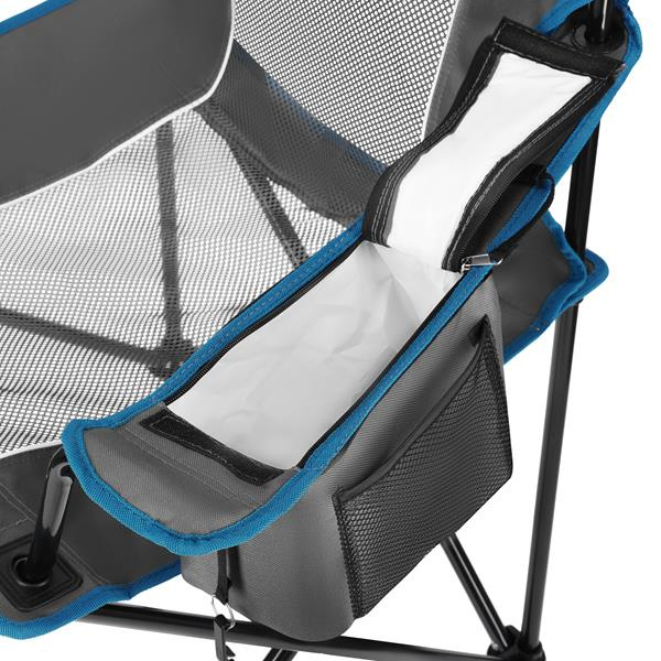 Židle je vybavena držákem na nápoj, bočním úložným prostorem na drobnosti (např. knihu, telefon, baterku) a síťovanou kapsou, která se perfektně hodí jako úložný prostor na láhev, svačinu nebo mapu. Díky těmto řešením máte vše, co potřebujete, vždy po ruce.
