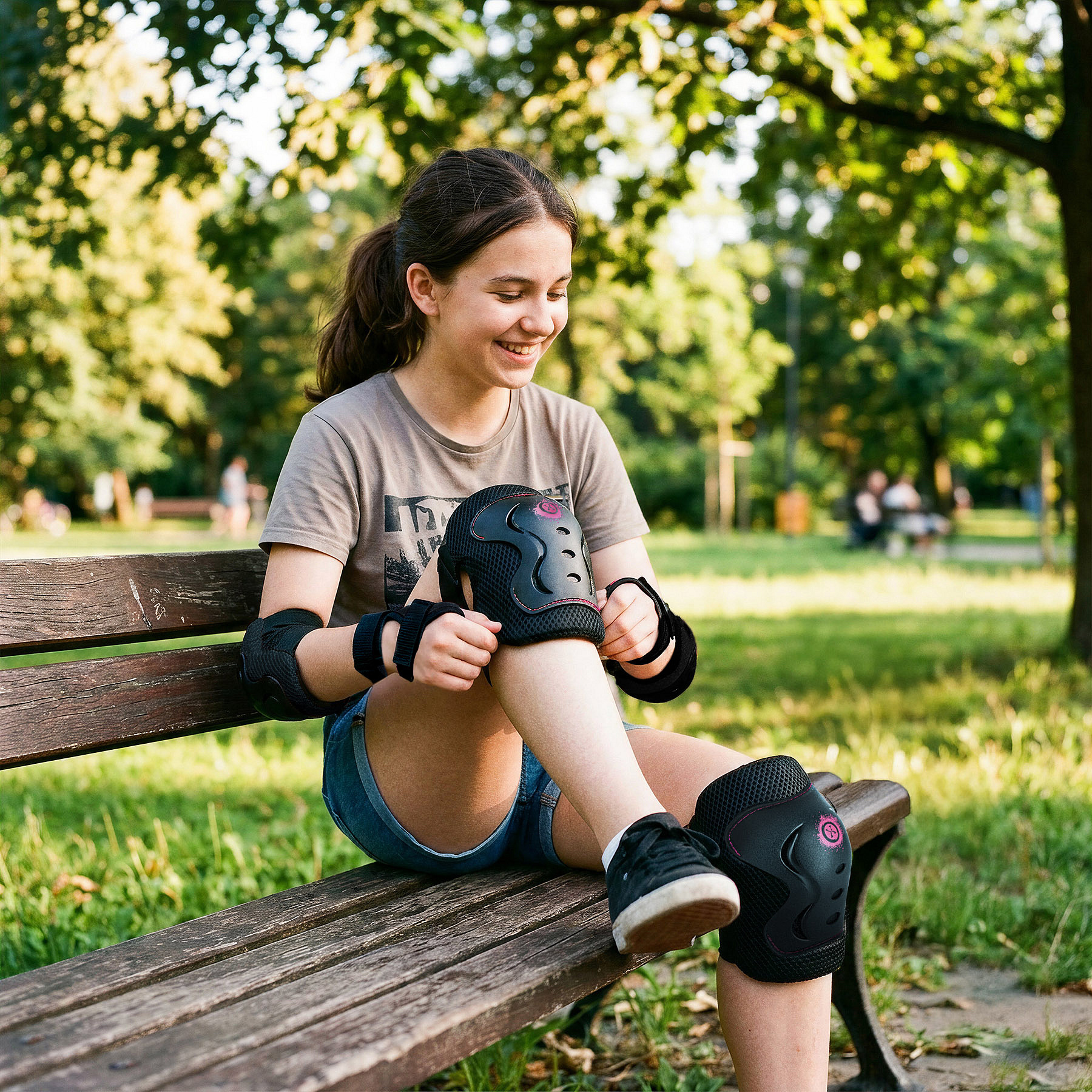Díky nastavitelným popruhům na suchý zip a elastickým páskům se chrániče dobře přizpůsobí tělu a drží pevně na svém místě i během pohybu. To zaručuje nejen bezpečnost, ale i volnost při jízdě.