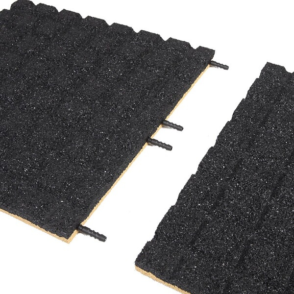 Při spojování gumové dlažby kolíky, doporučujeme dlaždice ukládat po řadách a každou další řadu přesunout o polovinu šířky dlaždice.
