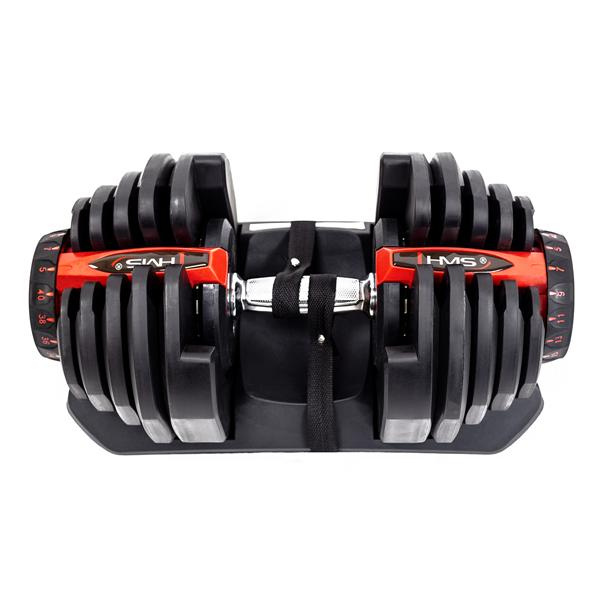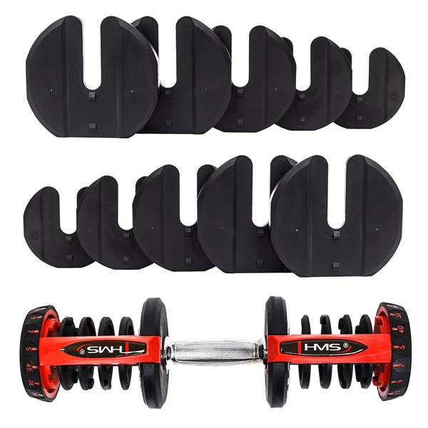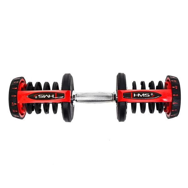 Produkt je vyroben z materiálů nejvyšší kvality. Velkou výhodou SR80 HMS je ergonomicky tvarovaná rukojeť činky, potažená protiskluzovým materiálem. Regulovatelné jednoruční činky značky HMS představují inovativní řešení pro milovníky silových sportů – 10 kotoučů umožňuje libovolné nastavení zátěže podle potřeb uživatele.
