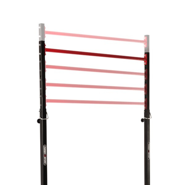 - Nastavení výšky: Nezáleží na výšce cvičence, protože hrazda má až 5 úrovní výšky se skokem po 14 cm – od 190 do 246 cm. Díky tomu může každý cvičící, bez ohledu na svou výšku a tréninkové potřeby, optimálně nastavit výšku hrazdy.
