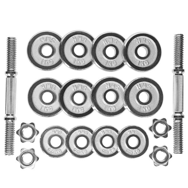 Popis Chromovaný činkový set v kufru HMS STC-15 15 kg