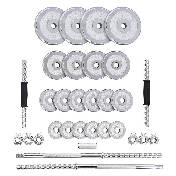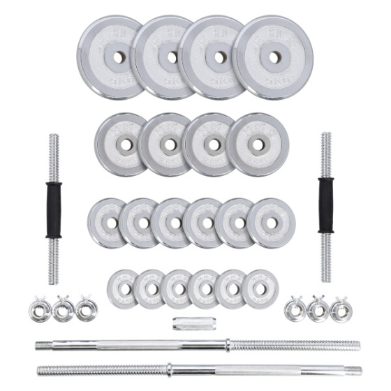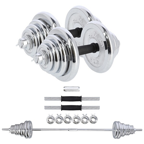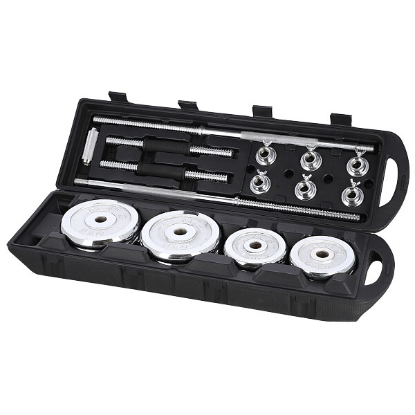 Činky jsou vyrobeny z vysoce kvalitní, chromované oceli, která je zárukou dlouhé životnosti. Kotouče se proti posunutí zajišťují šroubovacími zámky, které jsou dodatečně jištěny šroubem s křídlovou matkou.