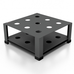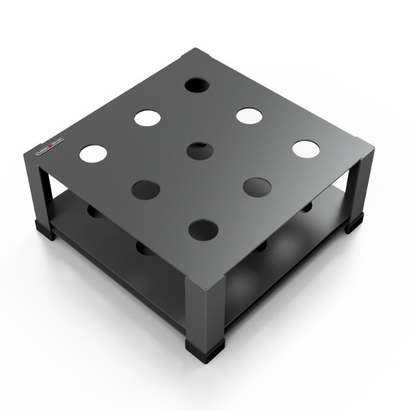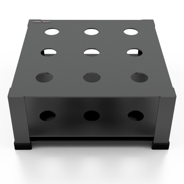 Profesionální stojan na olympijské osy MARBO MP-S208 je vysoce stabilní a díky gumovým nožkám drží pevně na svém místě a zároveň chrání podlahu před poškozením. Odložené hřídele jsou opřeny o spodní desku a nedotýkají se podlahy. Stojan pojme devět os o průměru 50 mm.