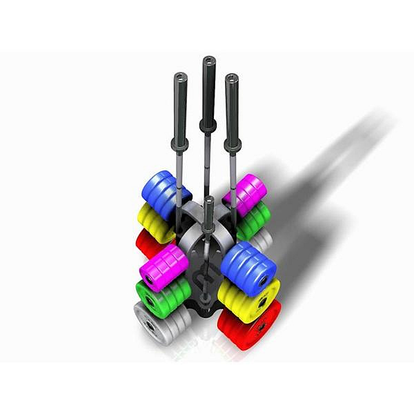 Na spodní tyče umísťujte závaží o hmotnosti 25 kg, do středu o hmotnosti 20 kg a horní tyče jsou navrženy na hmotnost 10, 5, 2,5 a 1 kg.