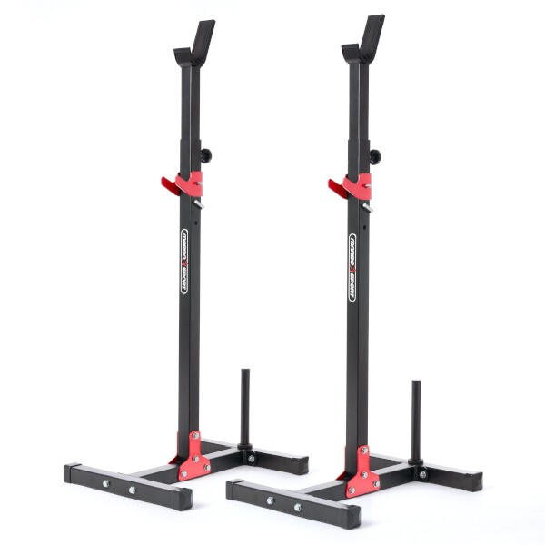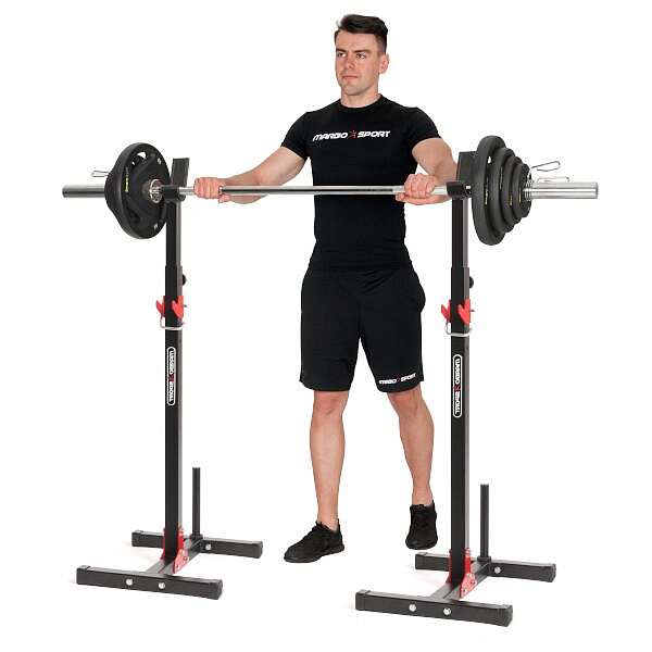 Stojany MARBO MH-S202 vyrobené v Polsku s použitím oceli nejvyšší kvality, která zajišťují bezpečnou nosnost až do 250 kg. Jsou ideální volbou pro ty, kteří hledají trvanlivé a cenově dostupné stojany. Díky nastavení výšky ( v rozmezí 87 - 145 cm) můžou být použité samostatně nebo jako externí stojany během cvičení na lavici. Promyšlená konstrukce zajišťuje stabilitu a bezpečnost při tréninku. Komfort zajišťují pogumované spodní konce pro lepší stabilitu. Stojany jsou opatřeny trnem pro odkládání volných závaží.
