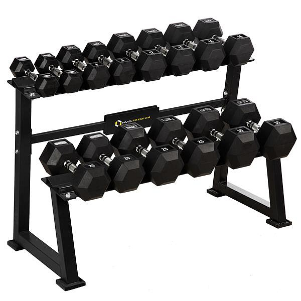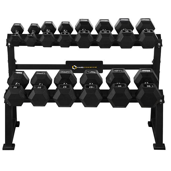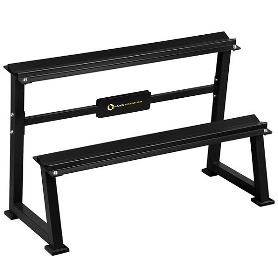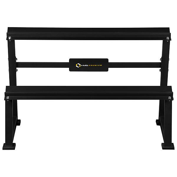 Stojan na jednoruční činky HMS Premium STR20 je ideálním pomocníkem pro uložení až 7-mi párů činek. Kvalitní, ocelová konstrukce ja vyrobena z profilu 50 x 50 mm, díky tomu unese zatížení až 500 kilogramů. Stojan STR20 má dvě "kolejnice" o rozměru 122 x 22 centimetrů, které jsou umístěny nad sebou pro snadnou orientaci mezi odkládaným náčiním. Čtyři nohy stojanu jsou opatřeny gumovými patkami, které chrání podlahu před jejím poškozením.