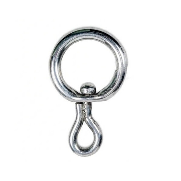 Svařované, otočné očko ze silného ocelového drátu o průměru o 7 mm. Očko je otočné o 360°a zabraňuje zamotání řetězů nebo lan připevněných ke kroužku.