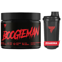 Šejkr Boogieman od společnosti Trec Nutrition je šejkr o objemu 700 ml se sítkem a odměrkou na boku. Každý šejkr má 3 potištěné strany - logo Treck a "#TRECTEAM" na první straně, nápis "BOOGIEMAN" na druhé straně a vyobrazení 4 odměrek s nápisem "TO ACTIVATE BEAST MODE" na třetí straně. Šejkry jsou vyrobeny velmi profesionálně, díky čemuž velice dobře těsní. Po pečlivém zašroubování víka a zátky není možné, aby se obsah z uzavřeného šejkru vylil. Samotná nádoba je lehce průsvitná, takže přesně vidíte množství tekutiny. Ideální pro přípravu proteinových koktejlů, gainerů a dalších přípravků, které vyžadují smíchání s tekutinou. Součástí šejkru je vyjímatelné sítko.