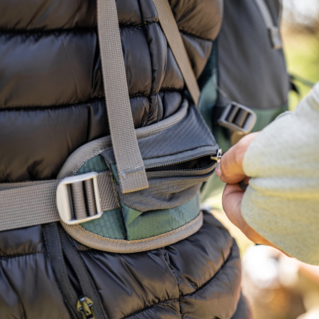 ✅ Polstrovaný bederní pás – rozkládá hmotnost, stabilizuje batoh