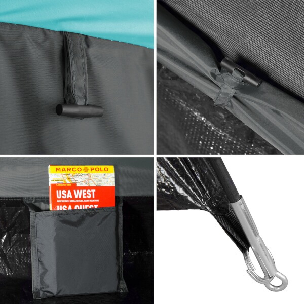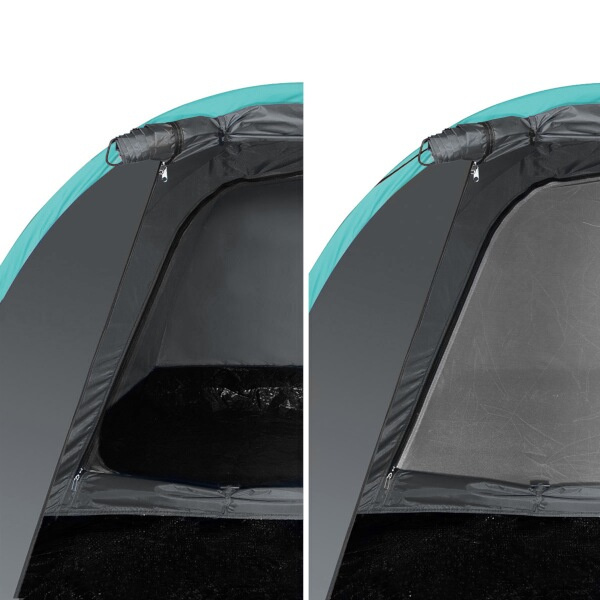 Dvě praktické kapsy uvnitř ložnice umožňují pohodlné uložení drobných předmětů. Uprostřed ložnice se pak nachází háček pro zavěšení svítilny.