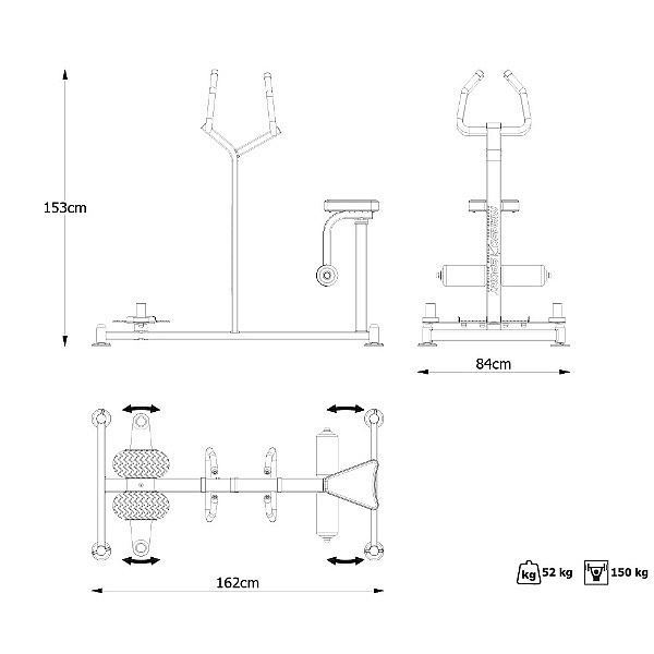 Twister 2v1 MARBO MP-U201 je produkt ze série Professional, určený jak pro profesionální, tak pro domácí procvičení a posílení šikmých břišních svalů. Stoj se skládá ze dvou nezávislých stanovišť - cvičení vsedě a ve stoje. Na twisteru tak mohou cvičit dvě osoby ve stejnou chvíli. Stanoviště pro cvičení ve stoje je vyrobeno z kapkového plechu pro větší stabilitu a navíc je vybaveno dvěma trny s gumovou podložkou pro přídavnou zátěž. Přidáním kotoučů si můžete upravit náročnost tréninku. Stanoviště pro cvičení vsedě je opatřeno zarážkou s vysokou vrstvou PU pěny a na dotek příjemným polstrováním. Madla jsou pokryta tuhou pěnou pro pohodlný "grip". Všechny pohyblivé části jsou opatřeny ložisky pro tichý a plynulý chod. V základně jsou 4 šroubovací, nastavitelné nožičky, stroj tak můžete mít v rovině i na křivé podlaze.