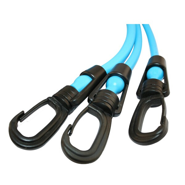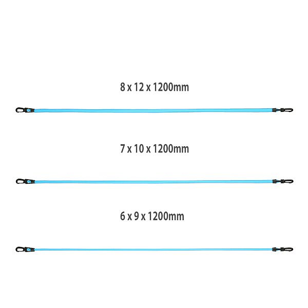 - Univerzálnost – přidávejte další gumy pro zvýšení odporu pomocí funkčních karabin, měňte úhel tréninku přesunutím úchytu úchytu za dveře a střídejte cvičené končetiny výměnou rukojetí.