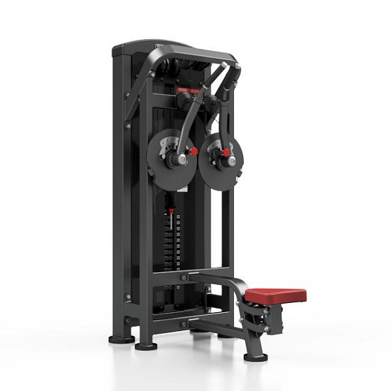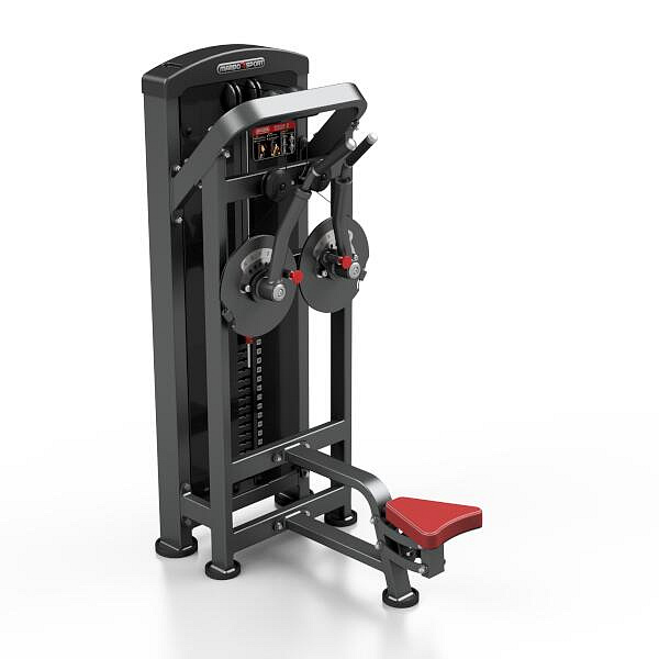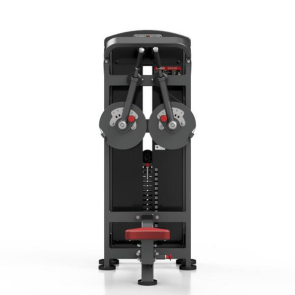 Upažování MARBO MP-U236 je nekompromisní, profesionální vybavení pro Vaší posilovnu. Pro výrobu byly zvoleny ocelové profily 120x60x3mm a 80x40x3mm, které zaručují nečekanou trvanlivost. Zátěž tvoří 13ks 10kg cihel. Celková váha závaží dodávána se strojem je tedy 130kg. Sedadlo je výškově regulovatelné ve čtyřech stupních a je podpořeno pneumatickým pístem, takže pro změnu výšky nemusíte ze stroje sesedat. Každé rameno jde nastavit do jedné ze šesti poloh. Všechny přenastavení se provádí pomocí červených, pružinových jistících kolíků. Polstrovaní je ze syntetické kůže sešité režnou nití značky COATS vyplněné tvrdou pěnou, to celé ja na 3mm hrubé, ocelové desce. Tichý chod zajištuje zakrytování černým plastem, z přední části je kryt opatřen průhledem pro snadné nastavení požadovaného počtu cihel. Stroj je navíc opatřen velikou samolepkou, která instruuje cvičence, jaké cviky jdou na stroji provádět a které skupiny svalů daný cvik posiluje.