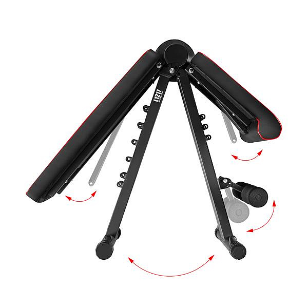 L1217 je vybavena třemi úrovněmi nastavení sedáku a šesti úrovněmi nastavení opěrky, kterou lze nastavit v rozsahu od 102° do 195°. Tato konfigurace umožňuje provádět širokou škálu cviků ve vzpřímené, šikmé i vodorovné poloze. Je skvělou volbou pro trénink s činkami nebo osou, která efektivně zapojuje různé svalové skupiny.