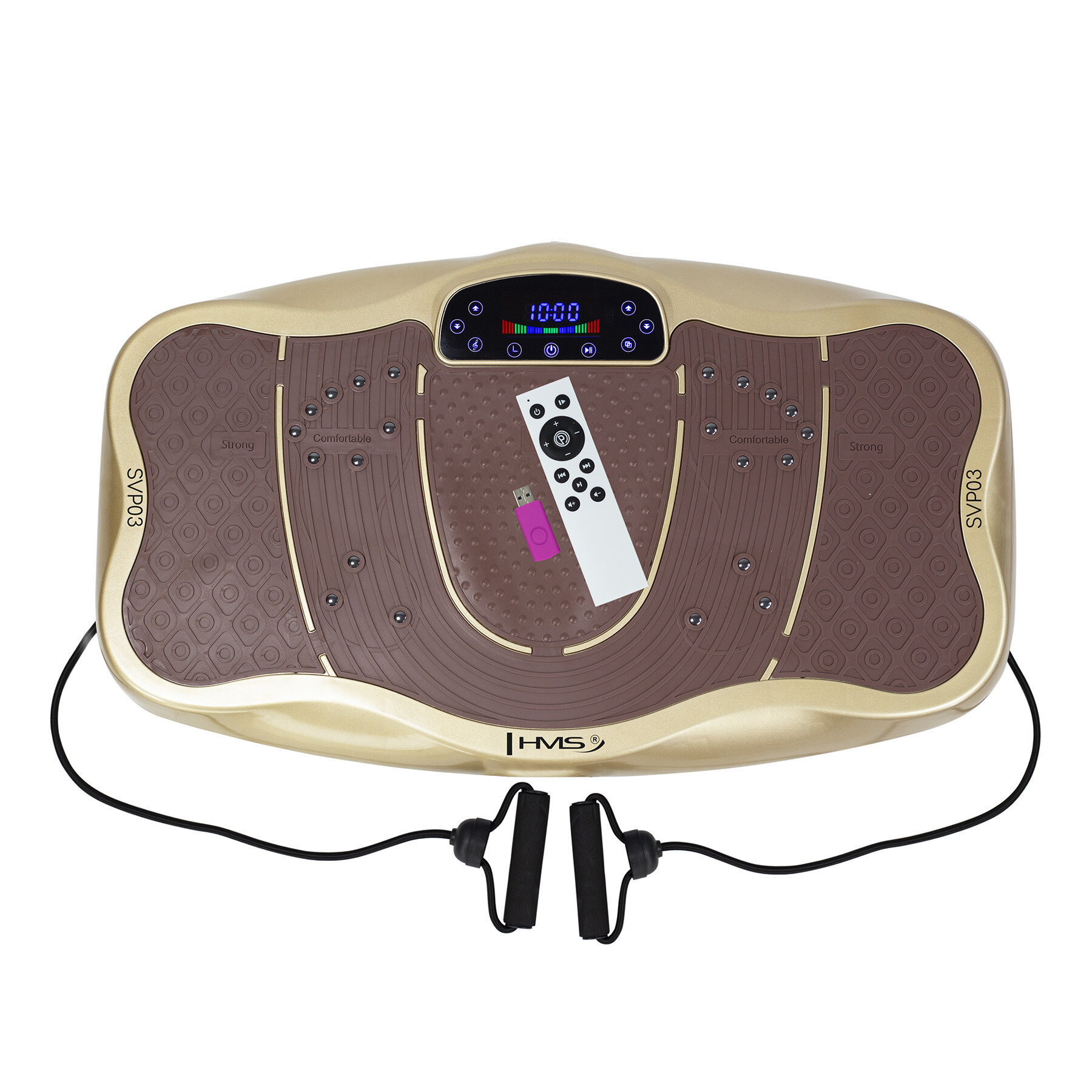 Vibrační plošina je zařízení vhodné pro každého bez ohledu na fyzickou kondici. SVP03 má 4 tréninkové režimy a manuální režim, který vám umožní přizpůsobit trénink vašim schopnostem a potřebám. Zařízení se velmi snadno používá. Dálkové ovládání dodávané s produktem umožňuje snadné ovládání a změnu programů. Platforma má navíc USB vstup a vestavěné reproduktory. To nám dává možnost poslouchat naši oblíbenou hudbu při tréninku.