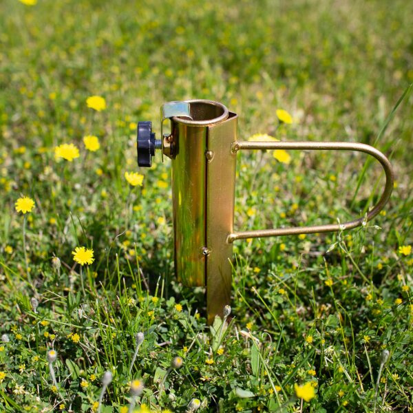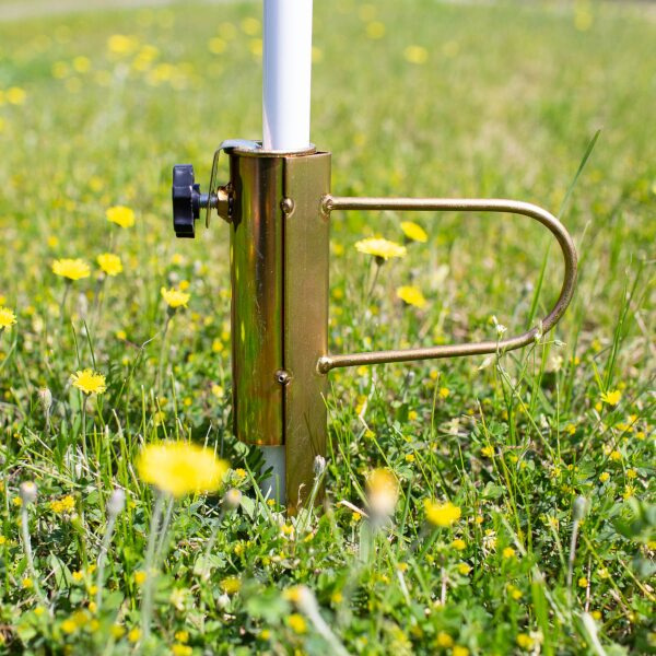 Ocelový držák NC7817 je ideálním doplňkem pro stabilní upevnění slunečníku na zahradě, nebo na travnaté ploše u jezera nebo rybníku. Trn se zapíchne do hloubky 25 centimetrů, do objímky v horní části držáku se zasune tyč slunečníku tak, aby byla zapřena o podloží apomocí šroubu s ergonomickou hlavou se zajistí proti pohybu. Takto uchycený slunečník je stabilní, neotáčí se a odolá i větru.