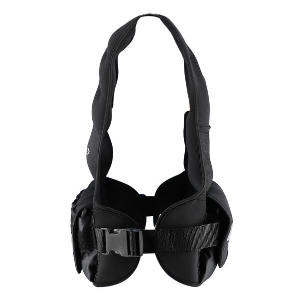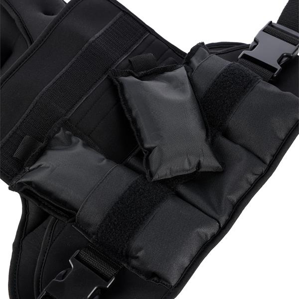 Vybavení bylo navrženo s ohledem na pohodlí uživatele. Regulovatelné popruhy umožňují dokonalé přizpůsobení jakékoliv postavě, a speciální neoprenový materiál je měkký, odolný proti potu a zabraňuje sklouzávání vesty i při intenzivních pohybech. Elastická síťovaná kapsa poskytuje prostor pro uložení telefonu, klíčů nebo peněženky, díky čemuž se trénink stává ještě praktičtějším.