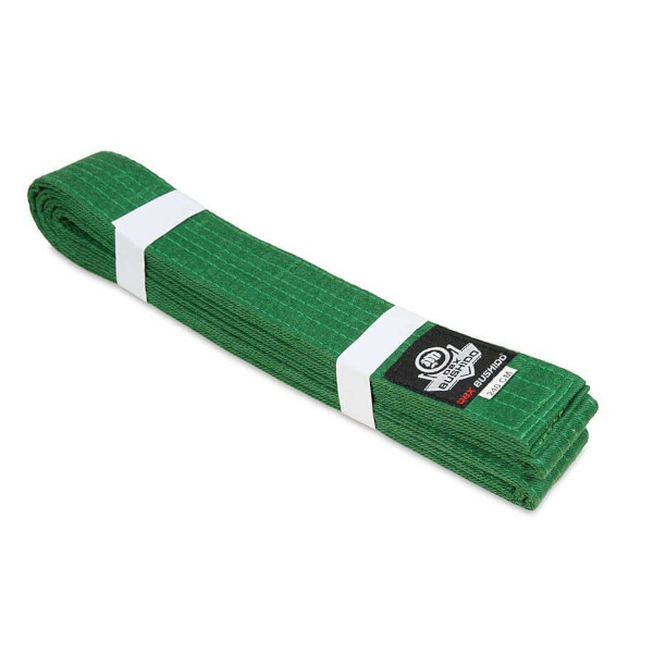 Pás ke kimonu DBX BUSHIDO OBI zelené barvy, který označuje technický stupeň 4. KYU.