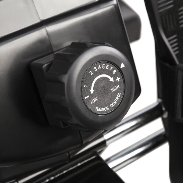 Systém zátěže tvoří naviják s lanem, které se vrací zpět pomocí silné pružiny, které asistuje gumové lano vedené uvnitř kolejnice, po které se pohybuje sedák. Samotná regulace zátěže se provádí v 8-mi stupních pomocí mechanického voliče, pomocí kterého se mění vzdálenost mezi magnetem a 8-mi kilogramovým, zátěžovým kolem, které je spřaženo s navijákem. Tento systém je bezúdržbový a tichý.